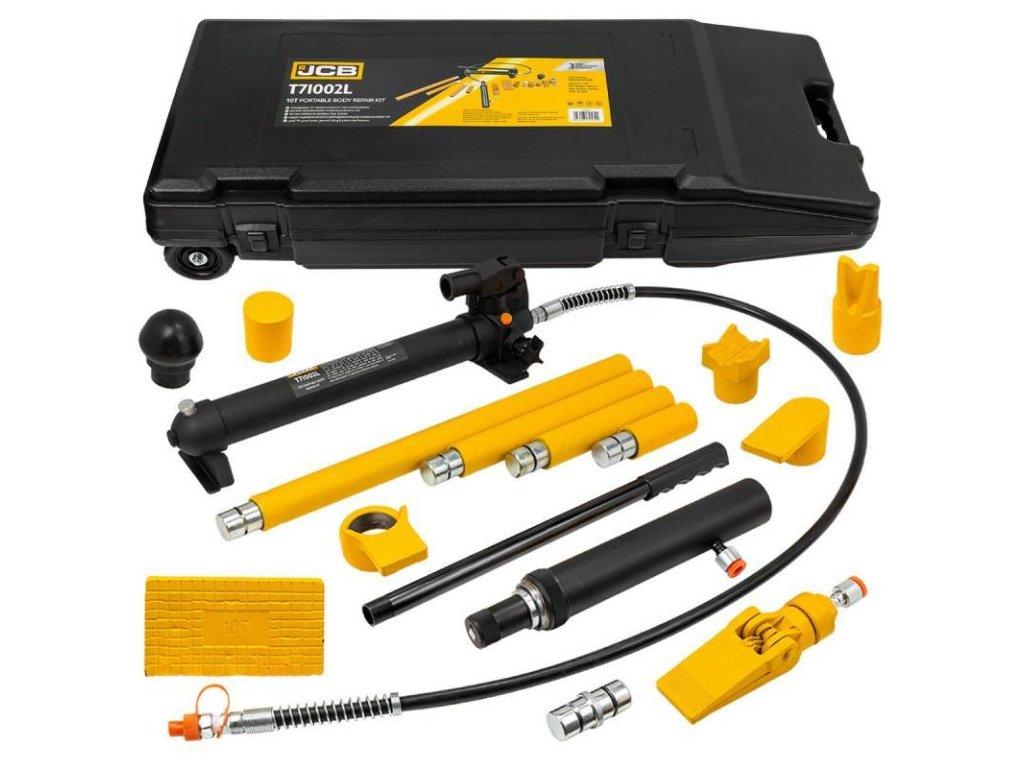 • popolna skupina vsebuje različne elemente za popravilo karoserij, okvirjev ter elemente za dviganje, potiskanje, vlečenje, upogibanje, izravnavo in raztezanje