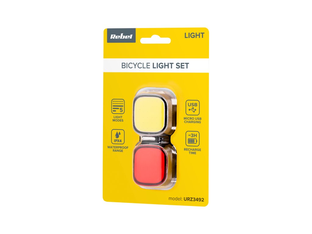 V kompletu: sprednja svetilka, zadnja svetilka, mikro USB kabel