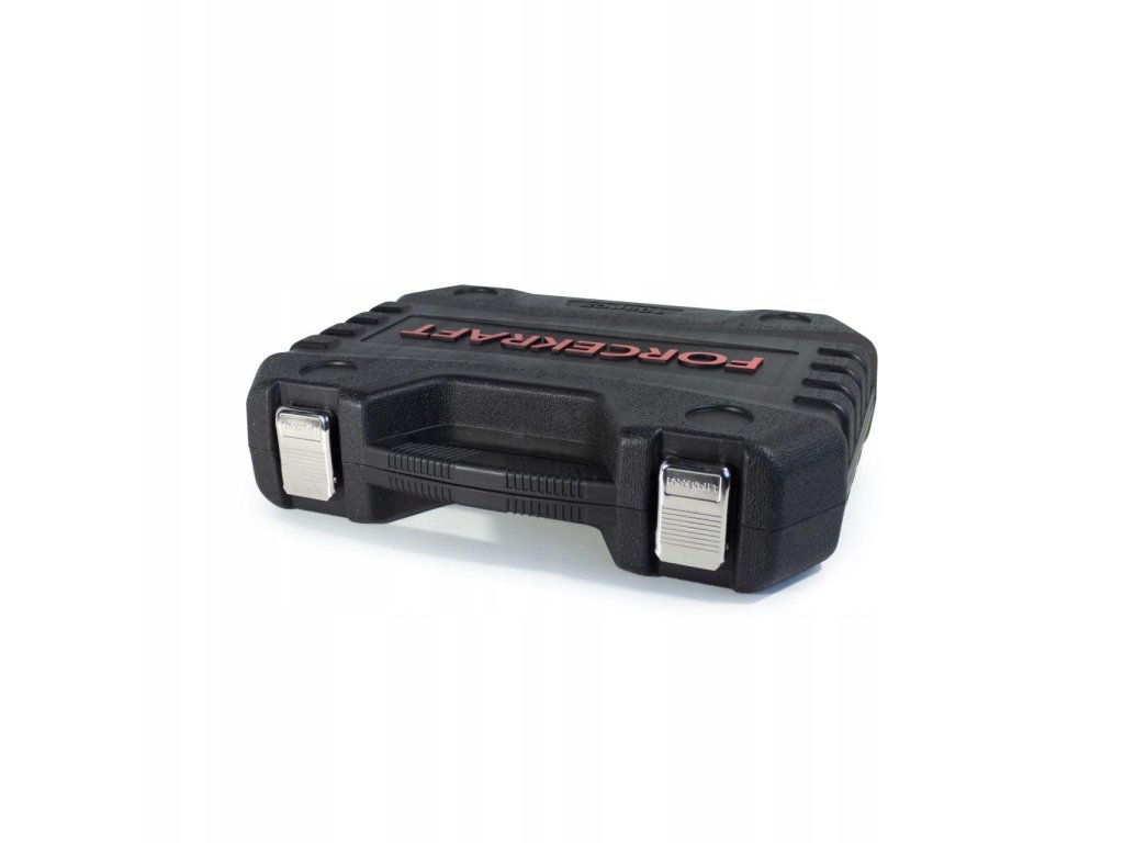 Celotna zbirka orodja je shranjena v zelo trdnem in ergonomskem plastičnem kovčku, ki omogoča enostavno prenašanje in shranjevanje kompleta.