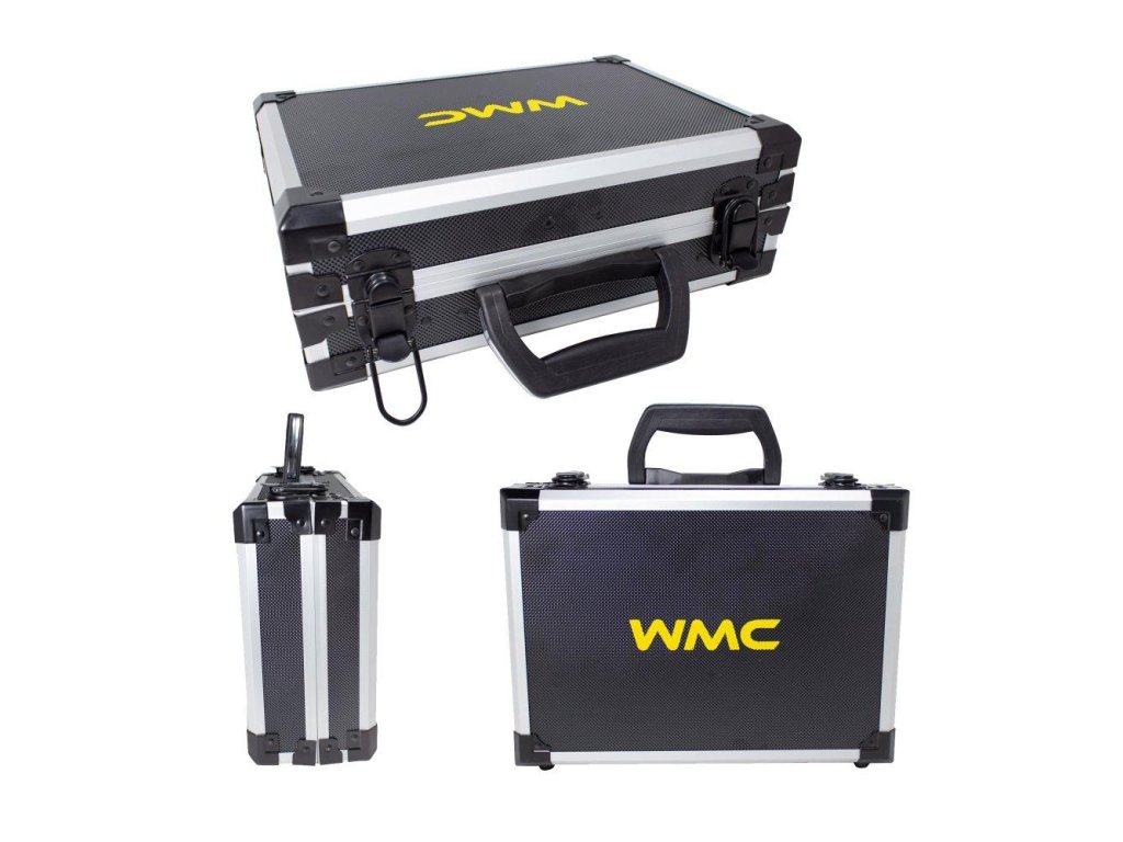 Kovček je opremljen s trdnimi in zanesljivimi sponkami, kar zagotavlja varen in lahek prevoz orodja.