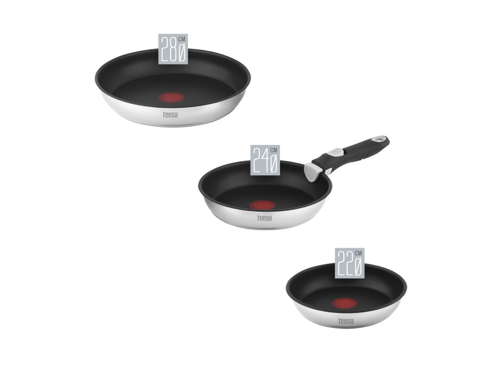 Komplet ponev z odstranljivim ročajem 22 cm, 24 cm, 28 cm TEESA FRYING PANS SINGLE HAND
