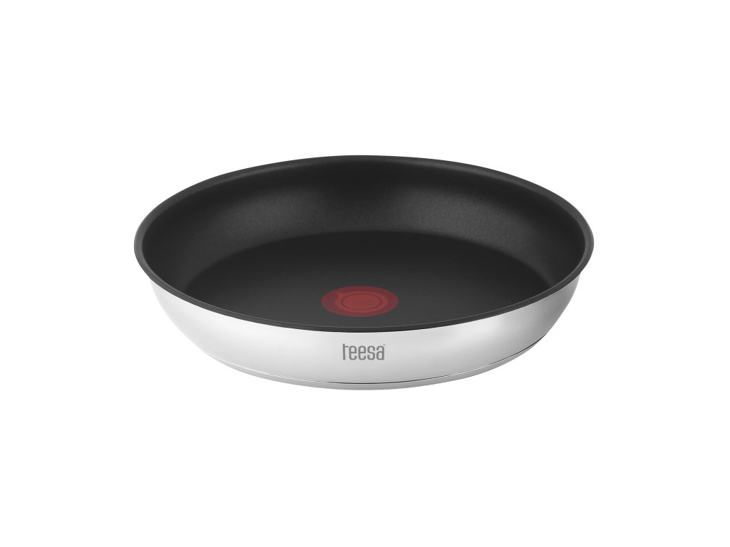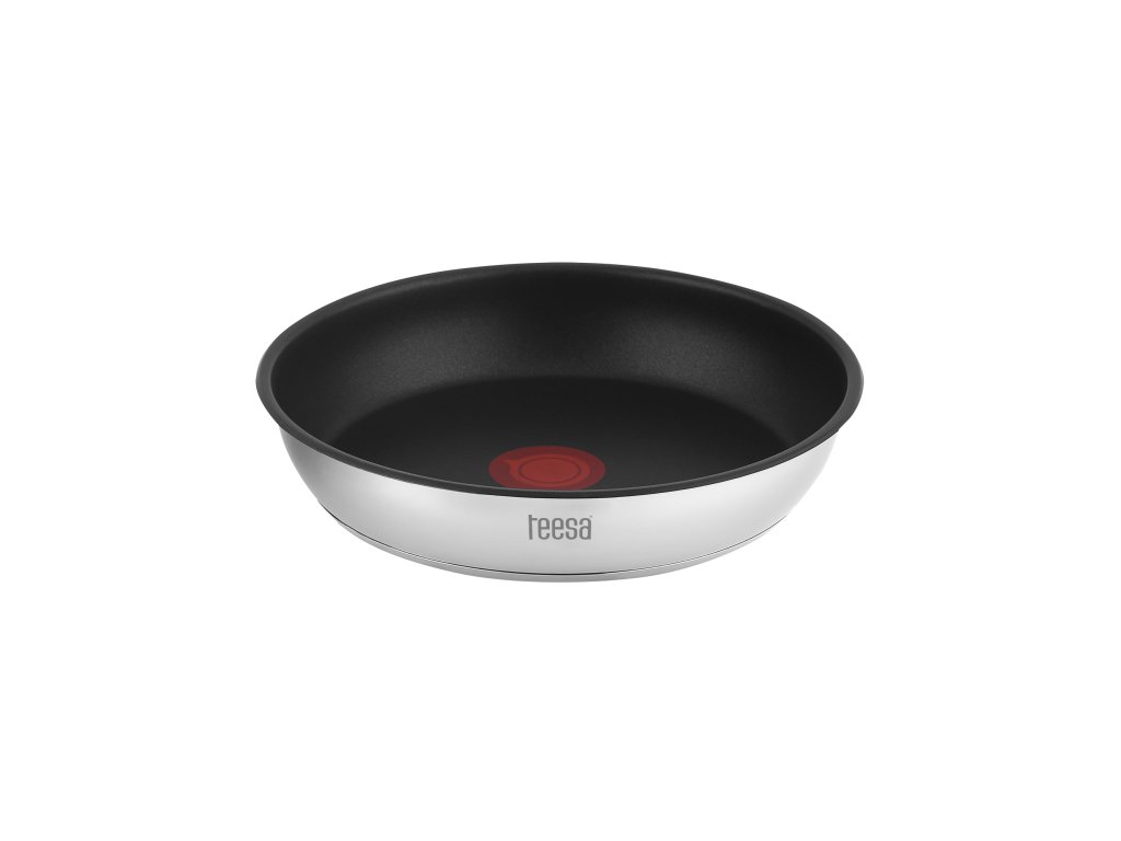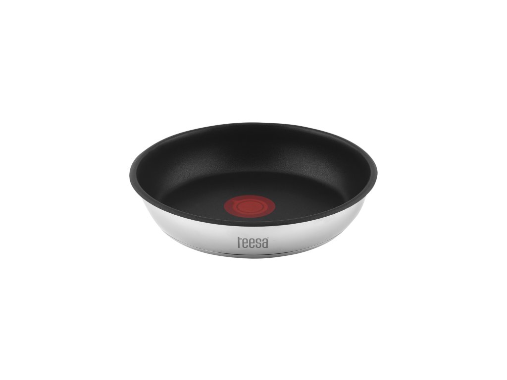 Večplastno dno pri ponvah Teesa zagotavlja odlično prevodnost in enakomerno porazdelitev toplote. Druga prednost je kazalnik ogrevanja, ki omogoča natančen nadzor trenutka doseganja optimalne temperature. Ta rešitev odpravlja tveganje zažganja jedi in olajša kuhanje.