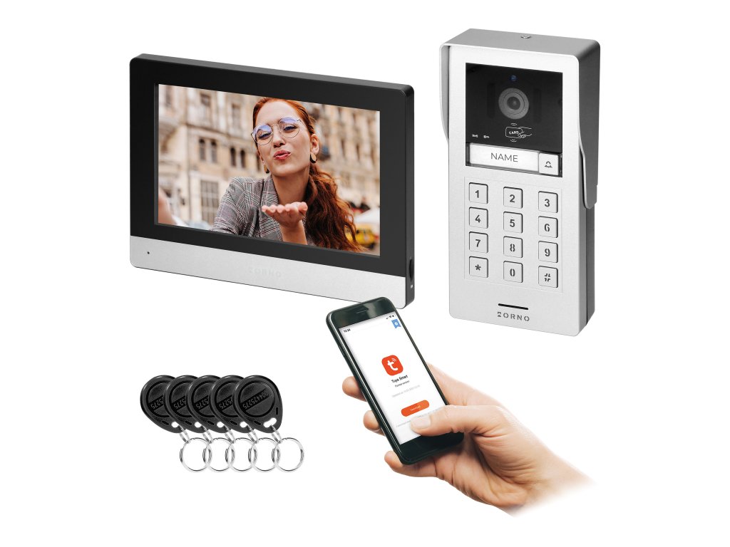 Odkrijte popolno kombinacijo modernega dizajna in vrhunske tehnologije s tem video domofonskim kompletom. S tem pripomočkom boste vedno imeli nadzor nad varnostjo svojega doma, udobno prek pametnega telefona ali tablice.