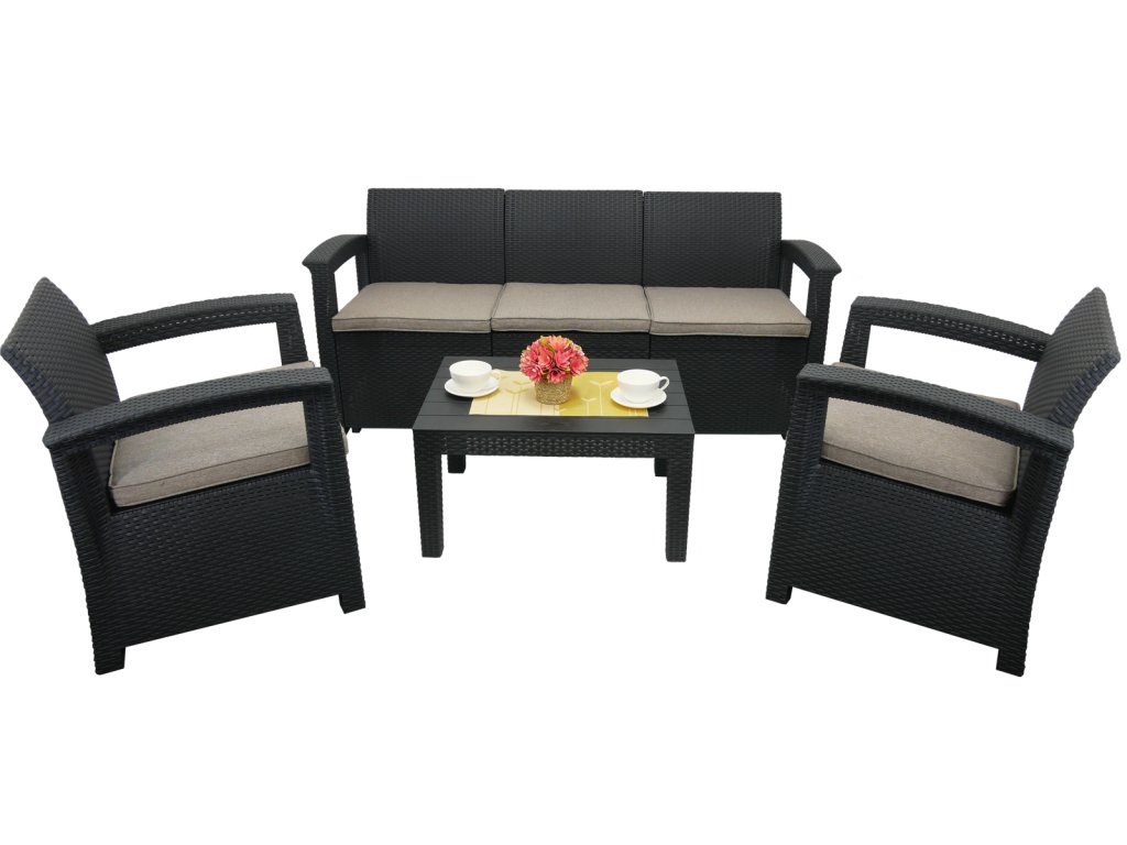 KOMPLET VRTNEGA PISANA - ANTRACIT (2 FOTELJA, MIZICA, VELIKA SOFA) *4233