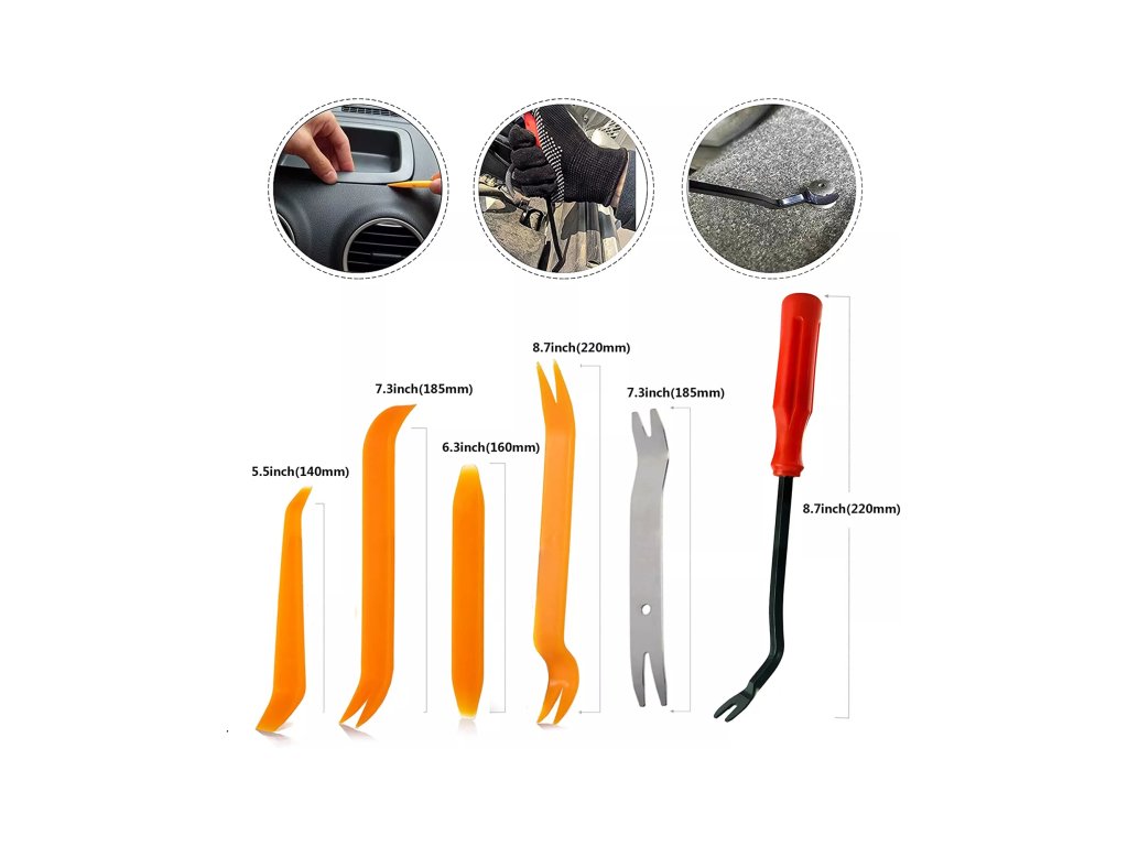 Komplet za demontažo oblazinjenja 726 kos E6147Ta obsežen komplet sponk in orodij je idealen za popravila in vzdrževanje avtomobilov. Zaradi širokega izbora najpriljubljenejših velikosti sponk in specializiranih orodij je ta komplet nujen za vsakega avtomobilskega navdušenca ali profesionalca na področju popravila avtomobilov. Glavne značilnosti:- Široka uporaba: Te sponke in orodja se pogosto uporabljajo v avtomobilski industriji za različne namene pritrjevanja in montaže.
