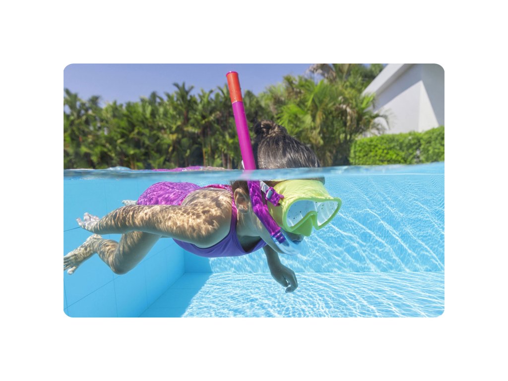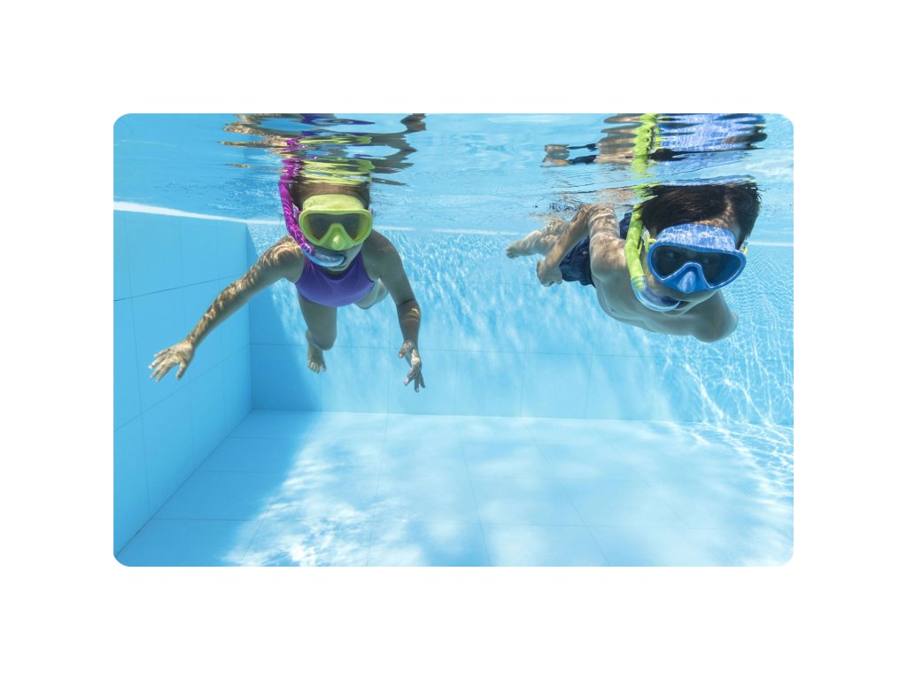 Zdaj lahko potapljaš in uživaš v zabavi v vodi do sitega! Plavalna maska, ki je v kompletu, ima leče iz polikarbonata.