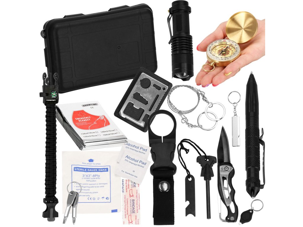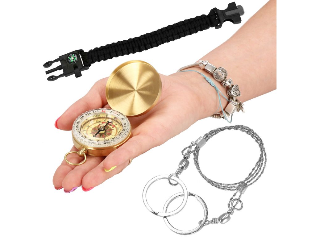 - 1x paracord zapestnica + mini kompas / vžigalnik / nujna piščalka - 3v1 - dolžina: 25 cm