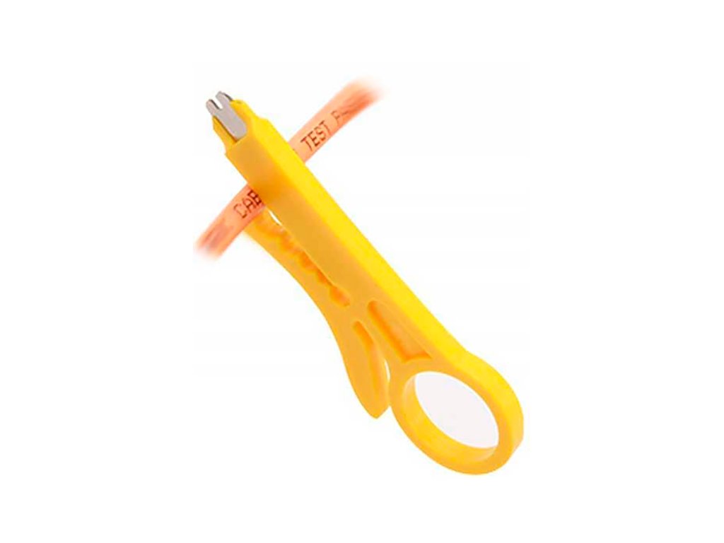 - Ima nož za natančno rezanje žil kabla pred vstavljanjem v konec