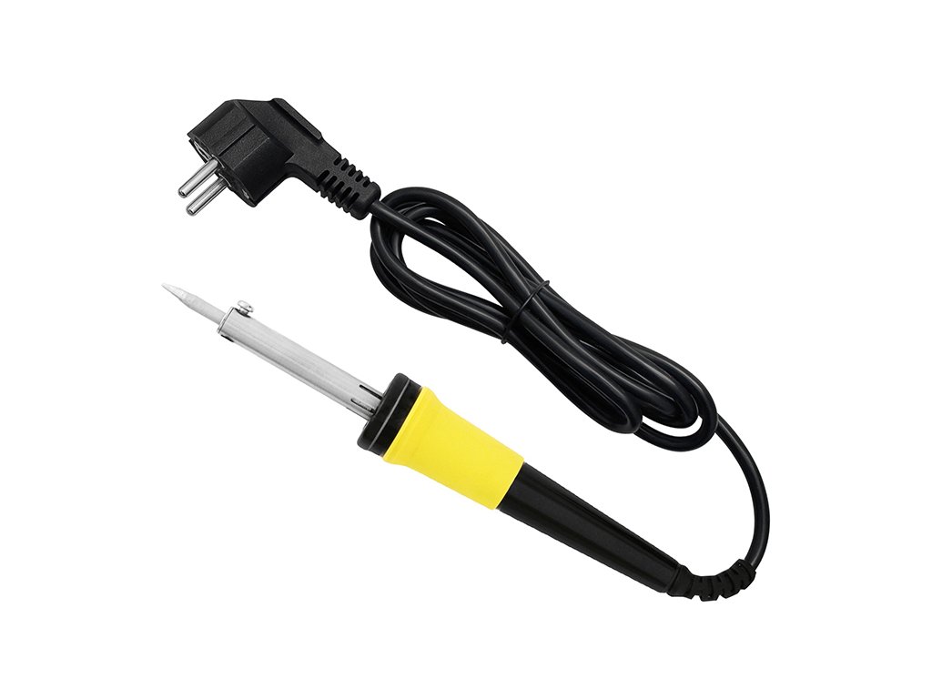 Spajkalnik za majhne elektronske komponente. Grelni element je bil zamenjan z debelo jekleno konico. Primeren za hobi in profesionalno uporabo. Ročaj, prevlečen z gumo, zagotavlja varnost in udobje pri delu.