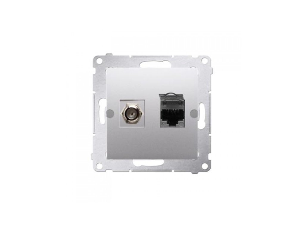 Vtičnica 1 x SAT "F" + RJ45 kat. 6 Simon 54 premium modul srebrna