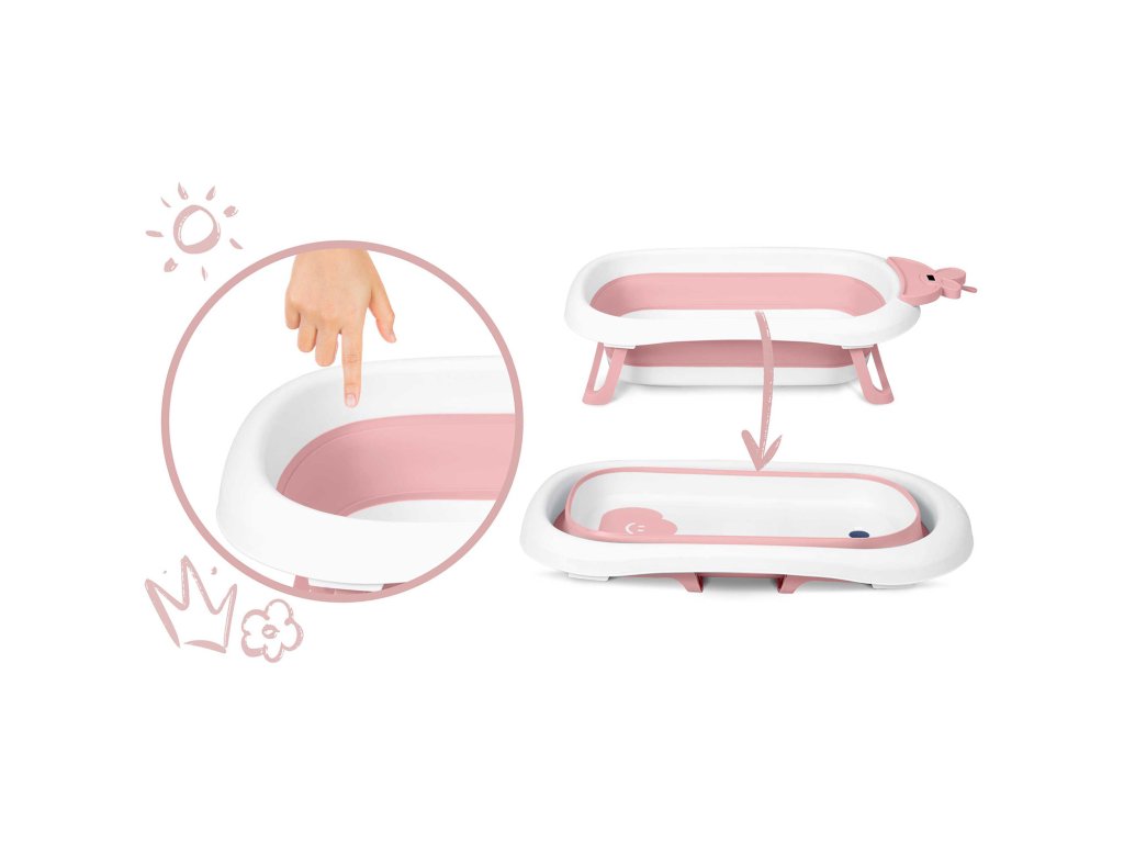 Zahvaljujoč zložljivim nogicam se kad med kopanjem ne zruši in nedrseče nogice zagotavljajo varnost na spolzki površini.