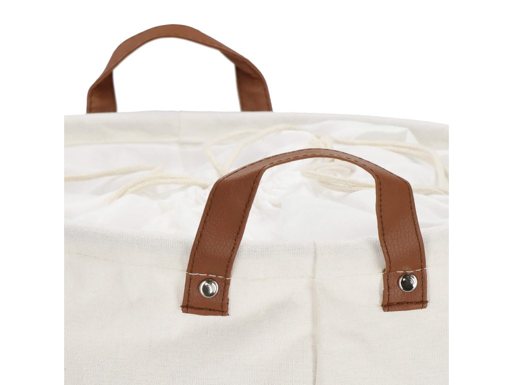 - K hornej podstave je prišitý látkový golier so šnúrkou - košík sa zatvára ako taška na šnúrku, takže sa doň zmestí viac obsahu (nad horný okraj)