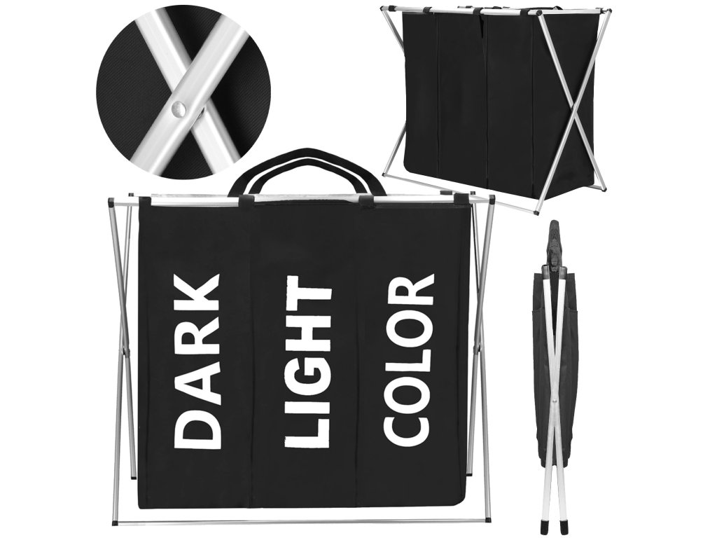 Košara za perilo HA0100 s 3 predelki za ločevanje barv (temna, svetla, barvna)