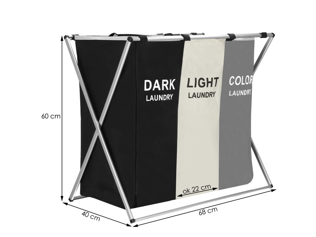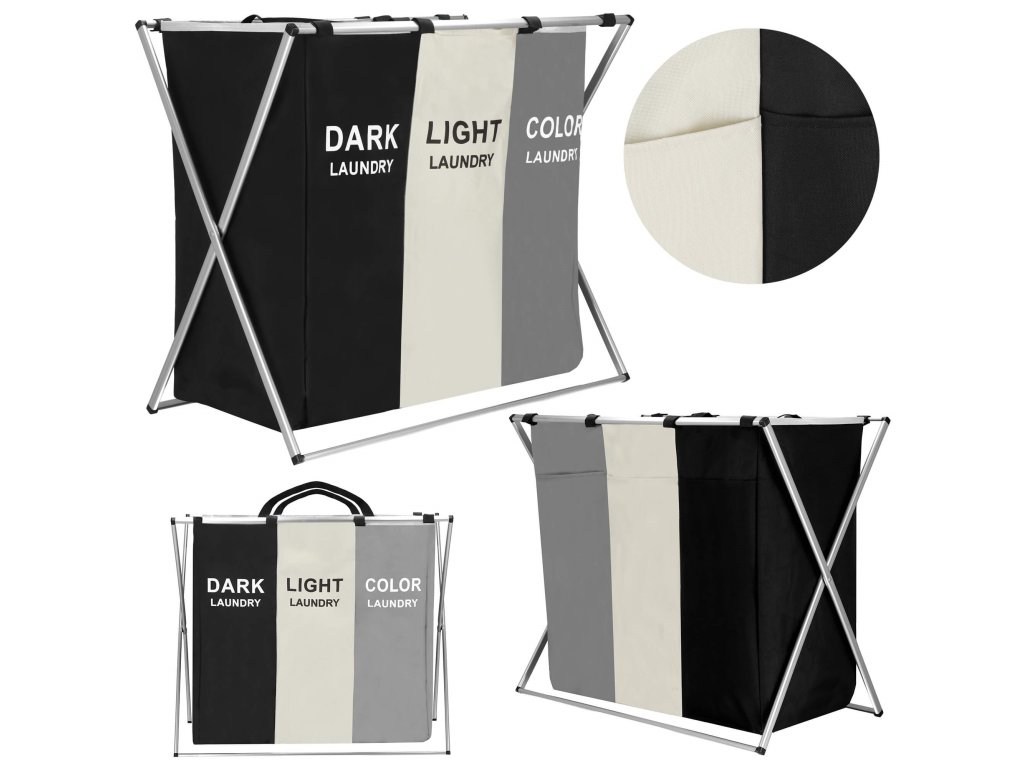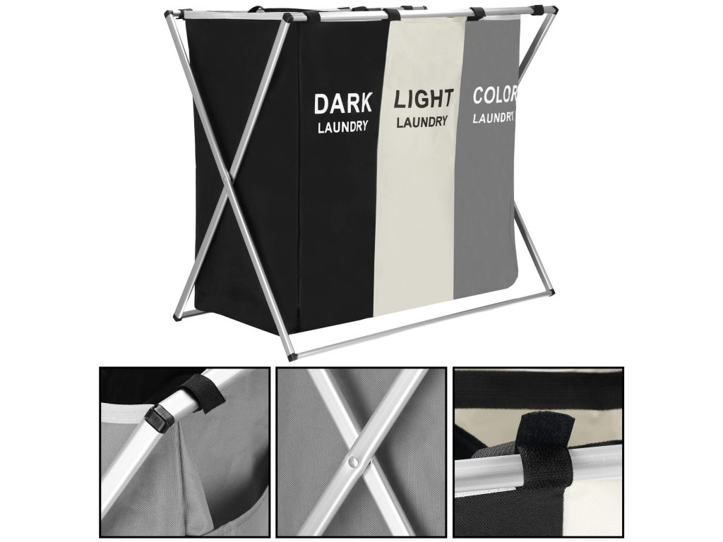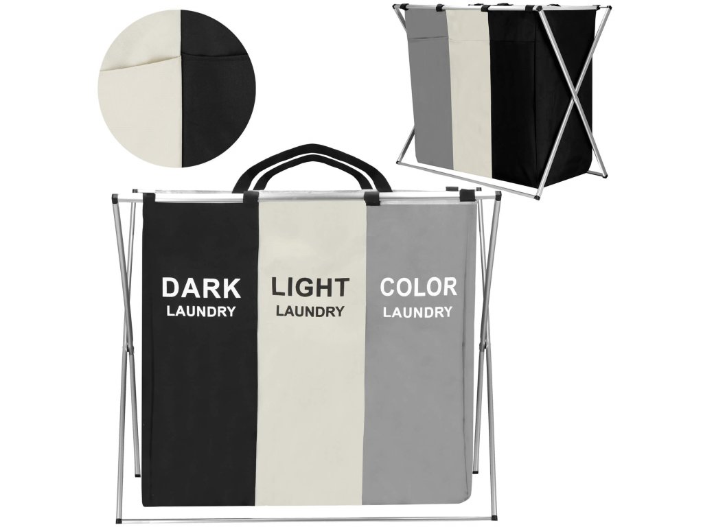 Koš za perilo HA0101 s 3 predelki za ločevanje barv (temna, svetla, barvna)