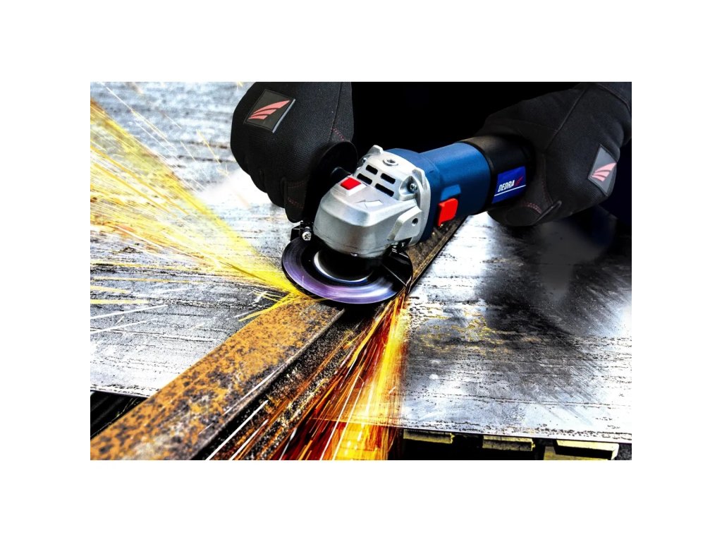 Prilagojena je za delo z diski s premerom do 125 mm in montažno odprtino 22,2 mm. Stroj ima navoj M14. Telo te kotne brusilke je narejeno iz trpežne plastike z večjo odpornostjo proti mehanskim poškodbam, medtem ko je ohišje menjalnika iz lahke, a močne aluminijeve zlitine, kar zagotavlja ne le vzdržljivost, ampak tudi majhno težo orodja, kar je pomembno za udobje uporabnika.