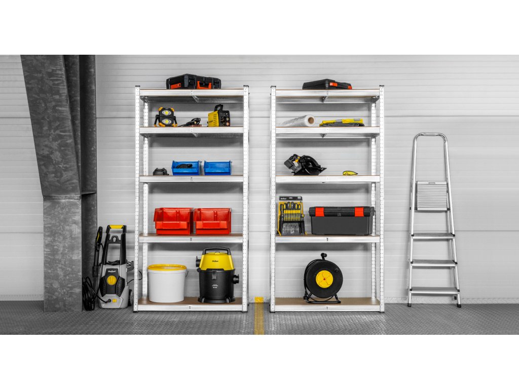 Delavniško stojalo iz linije Rebel Tools zaradi trdne konstrukcije iz pocinkane jekla je primerno za shranjevanje tako lahkih kot težkih predmetov. Opremljen je s 5 močnimi policami, vsaka pa lahko prenese obremenitev 100 kg. Da bi zmanjšali tveganje okvare stojala, enakomerno razporedite težo po policah.