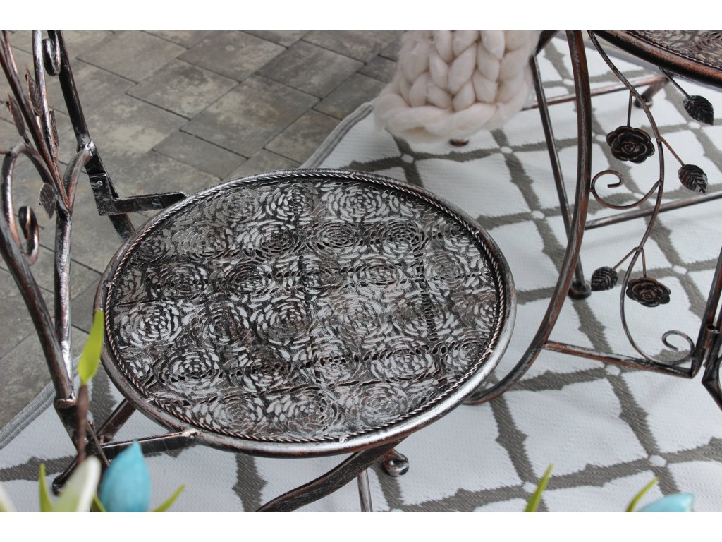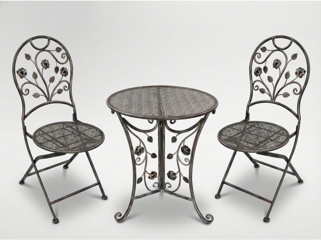 Pohištvo, navdihnjeno z vintage slogom, katerega elegantni vzorci dodajajo šarm vsakemu razporeditvi. Idealno se uporablja v vrtu, na terasi ali balkonu, dodajajoč prostoru izjemen značaj. Izdelano iz trpežnega kovine, zagotavljajo trajnost in stabilnost.