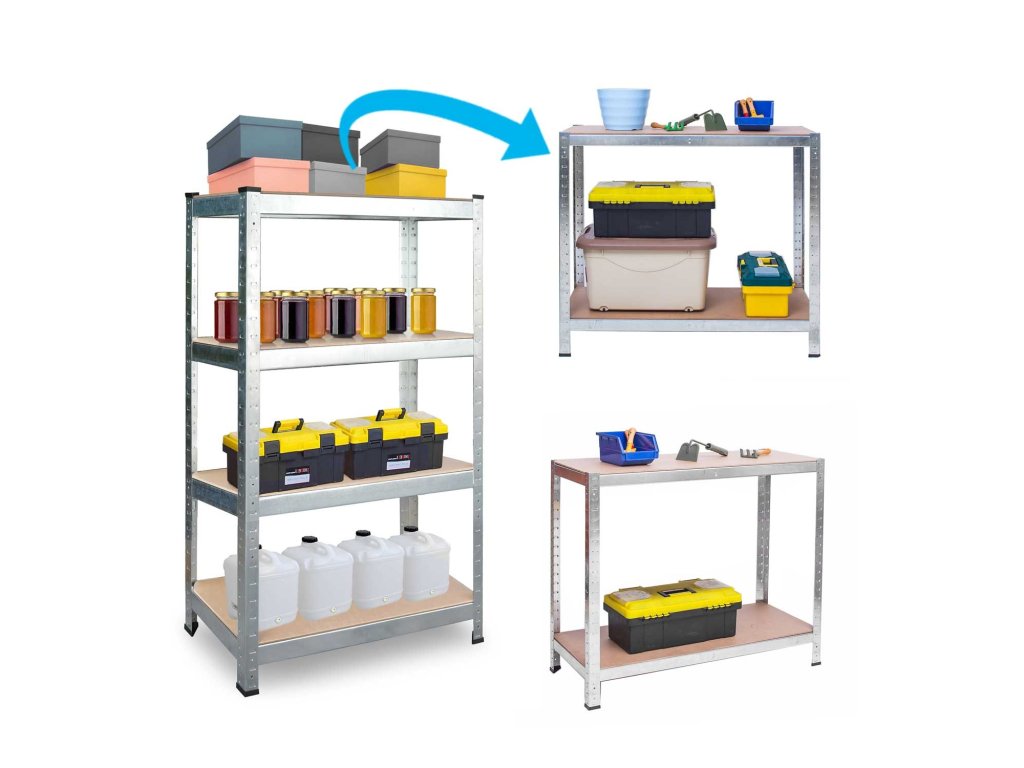 Stojalo sestavlja 4 police, na katere lahko postavite izdelke, kartone ali naprave z maksimalno nosilnostjo do 175 kg na vsako polico.
