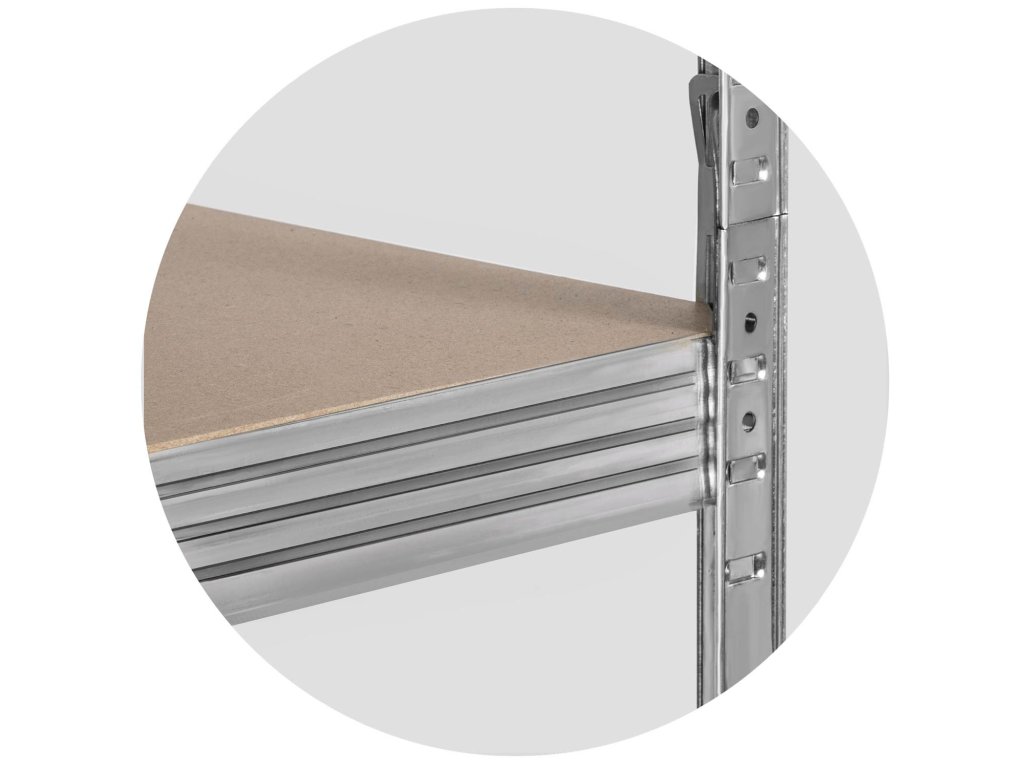 Stojalo sestavlja 5 polic, na katere lahko postavite izdelke, kartone ali naprave z največjo obremenitvijo ene police do 200 kg.