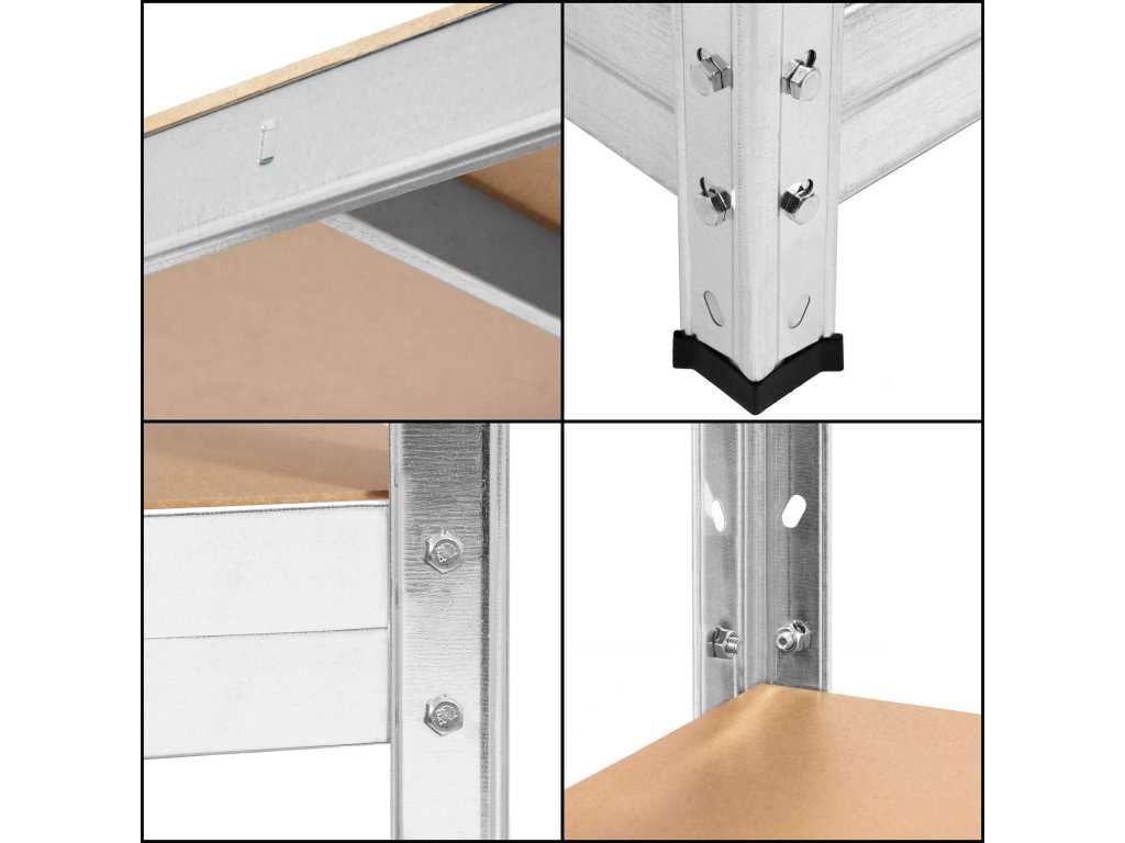 Každá polica je pripevnená 8 skrutkami (2 v každom rohu)