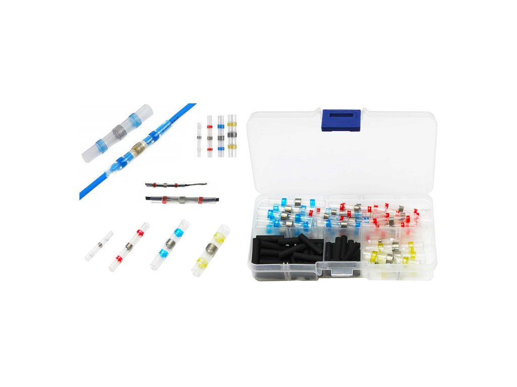 Toplotno skrčljiv hitri priključek s kositrom je nepogrešljiv, kadar želimo močno in zanesljivo povezati ali popraviti žice. V toplotno skrčljivi cevi se nahaja obroček s kositrom, ki se z gretjem na približno 150°C stopi in poveže žice. Poleg tega je v notranjosti hitrega priključka plast lepila, ki okrepi in zaščiti povezavo pred vlago. Po povezovanju žic ni potrebna nobena dodatna izolacija. Komplet vsebuje: Hitri priključki s kositrom belo-prosojni, obseg žic: 0,25~0,35mm2 (5 kosov) Hitri priključki s kositrom rdeče-prosojni, obseg žic: 0,5~1,5mm2 (20 kosov) Hitri priključki s kositrom modro-prosojni, obseg žic: 1,5~2,5mm2 (20 kosov) Hitri priključki s kositrom rumeno-prosojni, obseg žic: 4~6mm2 (5 kosov) Črne toplotno skrčljive cevi iz polietilena brez lepila in kositra 3,2/1,6mm dolžine 20mm (50 kosov) Tehnični podatki hitrih priključkov s kositrom: Delovna temperatura: -55°C ~ 125°C Temperatura krčenja in taljenja kositra: nad 150°C Stopnja krčenja: 2:1 Izolacijski material: Poliolefina Največja napetost: 600V Stopnja krčenja: 2:1 Plastična embalaža z zapiranjem in zanko za obešanje, velikost 135x70x30mm, zaščitena s folijo,Toplotno skrčljiv hitri priključek s kositrom je nepogrešljiv, kadar želimo močno in zanesljivo povezati ali popraviti žice. V toplotno skrčljivi cevi se nahaja obroček s kositrom, ki se z gretjem na približno 150°C stopi in poveže žice. Poleg tega je v notranjosti hitrega priključka plast lepila, ki okrepi in zaščiti povezavo pred vlago. Po povezovanju žic ni potrebna nobena dodatna izolacija.