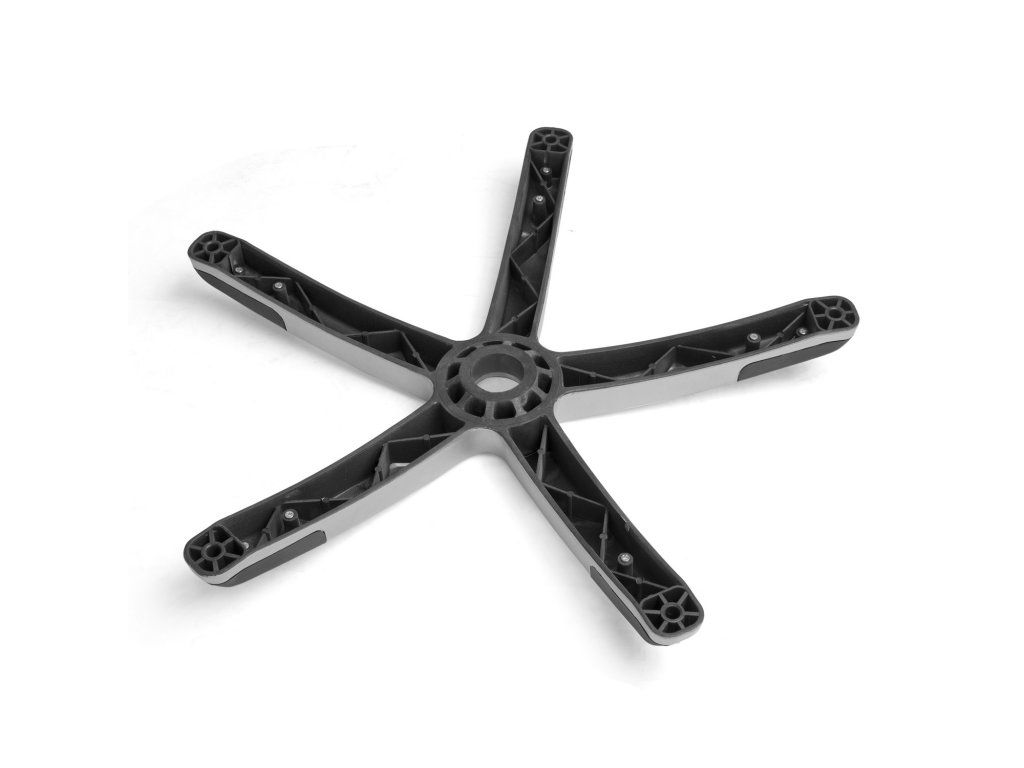 Nylonovo podnožje - standardno podnožje za stole in pisarniške stole v univerzalni črni barvi. Osnova s premerom odprtine plinske vzmeti 50 mm in velikostjo osi kolesa 11 mm zagotavlja stabilno sedenje. Dolžina roke je 34 cm, premer celotne osnove pa 70 cm.