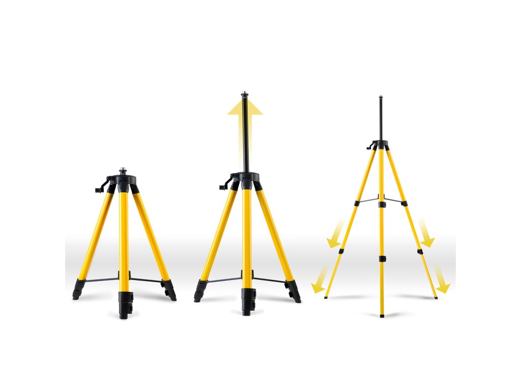 - Zaradi stabilne konstrukcije in regulacije stativ omogoča uporabo laserske libele v različnih okoljih – tako v zaprtih prostorih kot tudi na prostem, npr. pri gradbenih delih, obnovah ali notranjih popravkih.