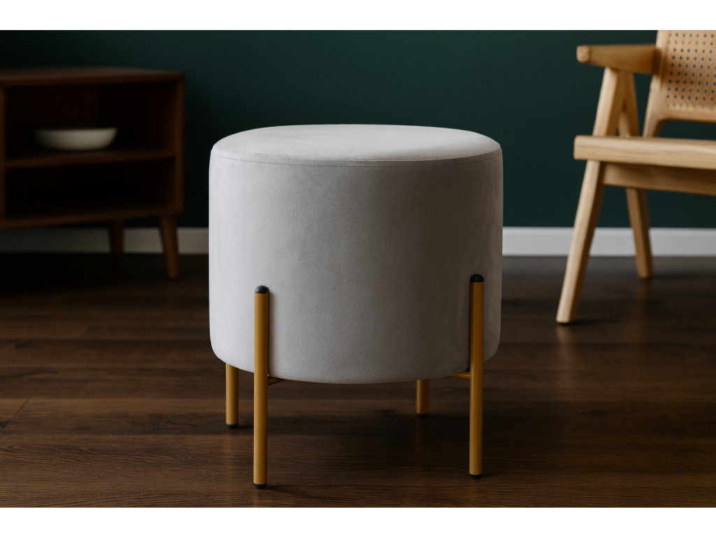 VELVET PUF NA ZLATIH NOŽICAH 35 x 40 CM SIV