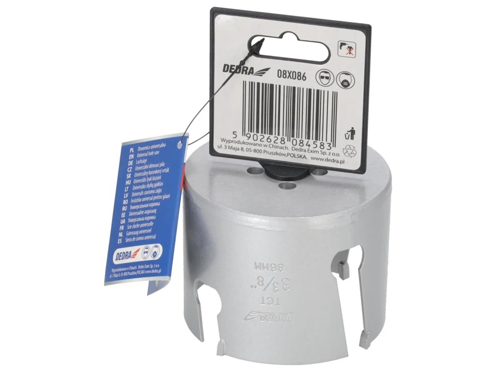 Univerzalna luknjaška žaga je nepogrešljivo orodje v delavnici za domače mojstre. Posebna konstrukcija rezilnega roba povečuje moč žage in izboljšuje vodenje luknje. Z uporabo vpenjalcev HEX 10 mm 1/2" 08X001 (priporočljivo za luknje: 08X019-08X030) in 5/8" vpenjalcev 08X002 (priporočljivo za luknje: 08X032-08X152) je mogoče uporabljati luknjaške žage na vrtalnikih ali vrtalnikih. Z uporabo vpenjalca SDS+ 08X003 (priporočljivo za luknje: 08X 032 -08X152) je mogoče uporabljati luknjaško žago DEDRA 08 X na široko z udarnim vrtalnikom v načinu brez udarcev. Za izboljšanje rezalnega učinka in povečanje jakosti imajo luknje več razcepnih vložkov, ki učinkovito obdelujejo material. Univerzalni pilotni svedri DEDRA 08 X se lahko z ustreznim pilotnim svedrom uporabljajo za delo v lesu, kovinah, pohištvenih deskah, PVC, mineralnih materialih, kot so keramične ploščice, porozni beton in silikati. Da bi povečali moč lukenj, je jedro izdelano iz visokokakovostnega jekla HCS št. 45 s debelino 1,5 mm, zobje pa so izdelani iz karbidne volframove zmesi s 6 % kobalta (volframovo jeklo YG 6X). To izboljša kakovost in trajnost odrezkov ter poveča učinkovitost vrtanja.