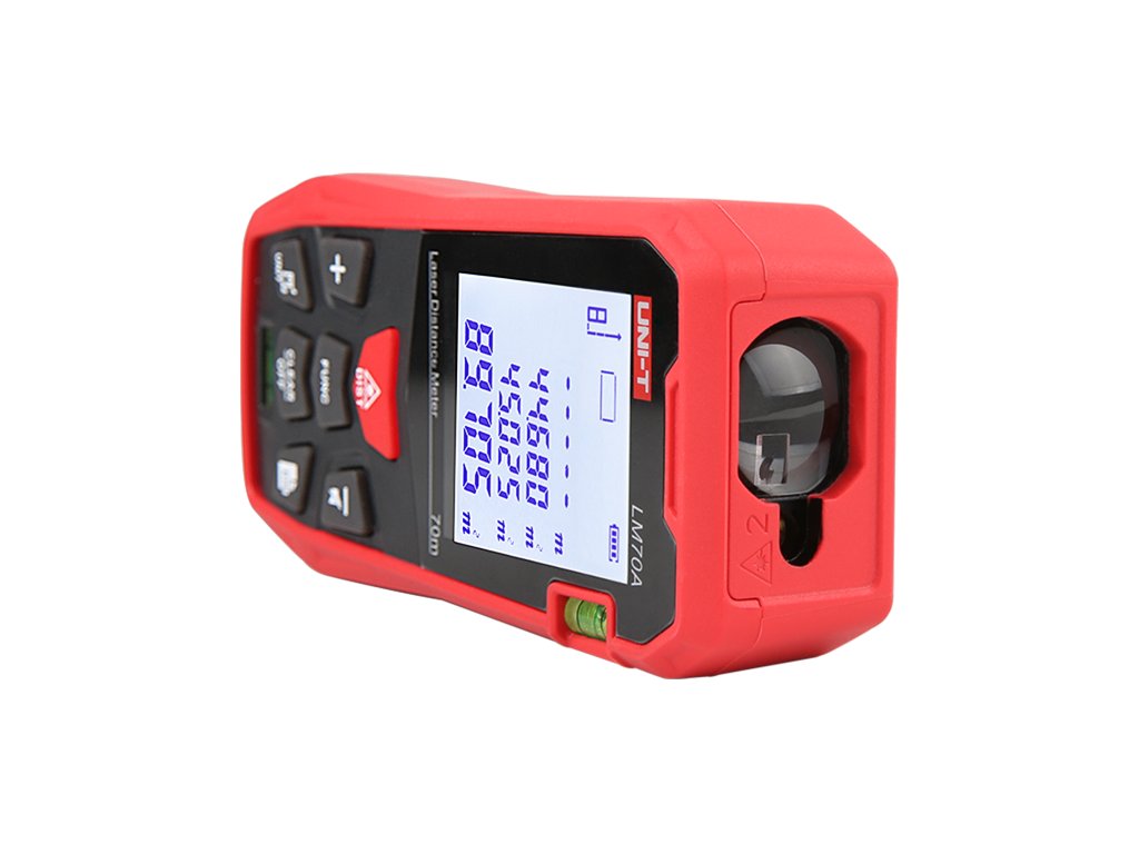 UNI-T LM70A je opremljen s številnimi funkcijami, ki olajšajo vsakodnevno delo. Poleg standardnega enkratnega in neprekinjenega merjenja merilnik omogoča merjenje površin, volumnov ter posredne in neposredne meritve z uporabo Pitagorovega izreka. Funkcije seštevanja in odštevanja rezultatov ter možnost shranjevanja do 99 skupin meritev naredijo napravo izjemno funkcionalno in priročno za uporabo.