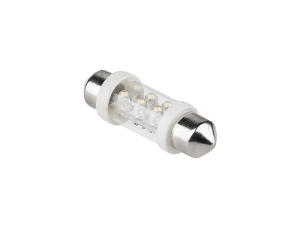 Tip: T10x40 Količina diod: 6 kosov SMD Grlo: Sv8,5 Napetost: 12 V Tok: 0,0115 mA Moč: 0,138 W Svetlost: 15,8 lm ---------- 5 kosov v pakiranjuTip: T10x40