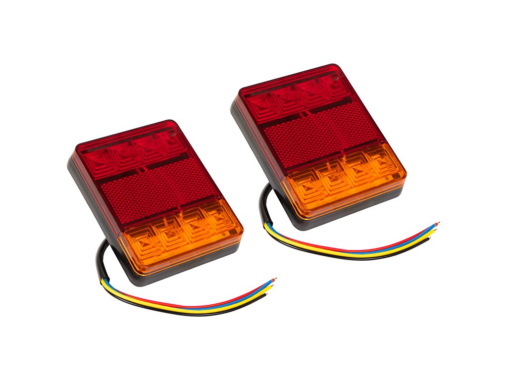 - Komplet vsebuje: Dva kosa LED luči, ki zagotavljajo celotno osvetlitev zadnjega dela prikolice, vključno s funkcijami, kot so zadnje luči, zavorne luči in smerne luči.