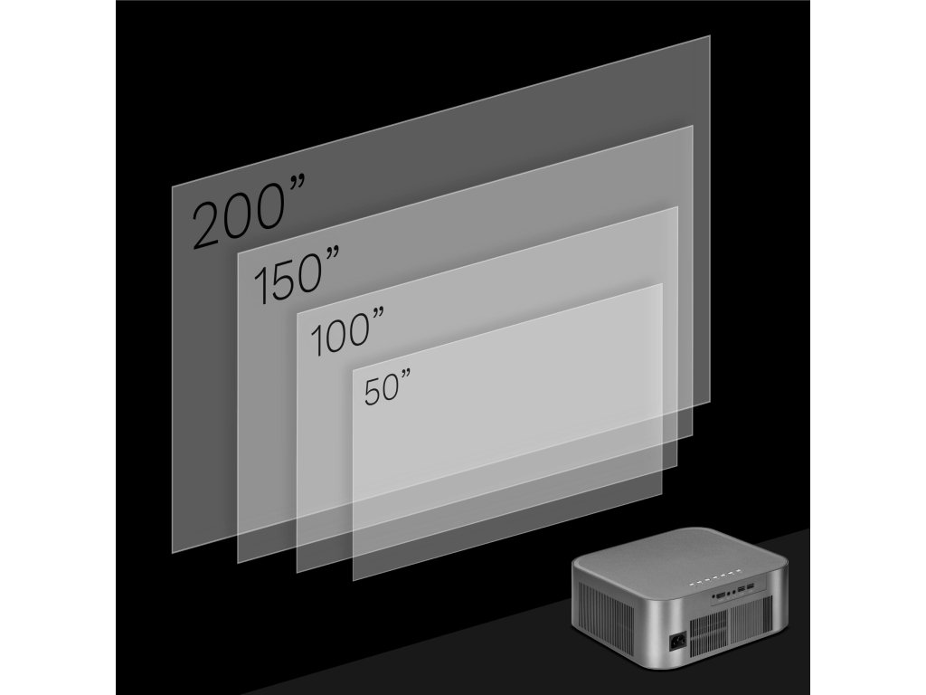 Razmišljate, ali izbrati projektor ali televizor Izbira je preprosta! Kruger&Matz V-LED100 ima nastavljivo velikost projekcije in omogoča prikazovanje slik z diagonalo do 200". Prilagodite velikost slike svojim potrebam ne glede na to, ali pripravljate filmski večer v otroški sobi ali predstavitev na velikem banketu.