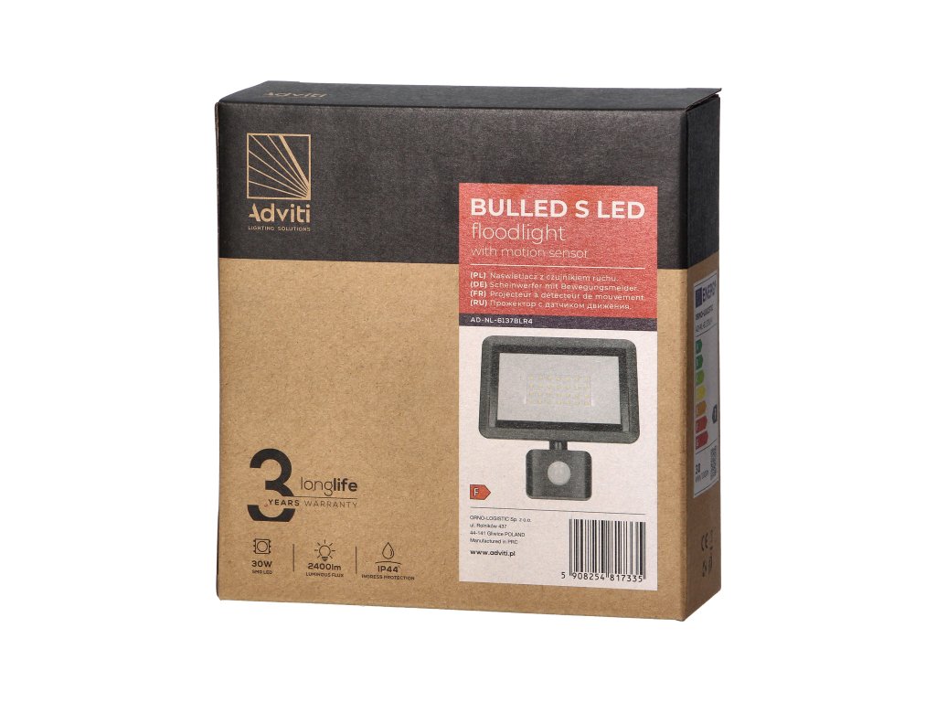 - Zmogljivost in učinkovitost: Reflektor ima moč 30W in svetlobni tok 2400lm, kar zagotavlja odlično osvetlitev z nizko porabo energije.