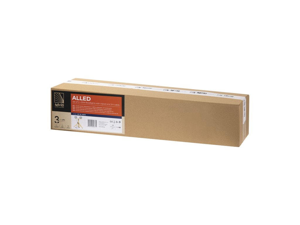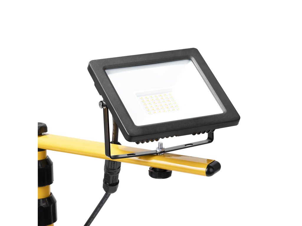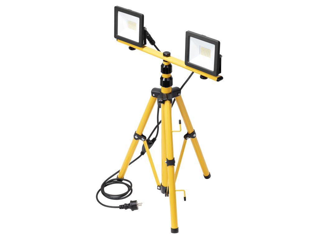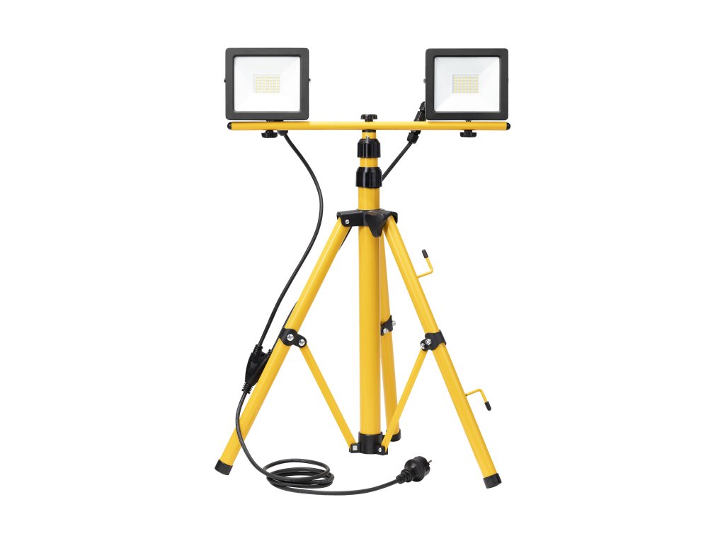 Komplet 2 reflektorjev s stojalom in kablom. Reflektorji so namenjeni za domačo in notranjo uporabo (garaže, hale), kakor tudi za zunanjo uporabo za osvetlitev parkirišč, vrtno razsvetljavo, osvetlitev nepremičnin, fasad, osvetlitev reklam, ipd. Vir svetlobe so SMD LED. Visoka zaščita IP65 zagotavlja odpornost proti prahu, umazaniji in stiku z vodo. Višino teleskopskega stojala je mogoče poljubno nastaviti do 150 cm. Omogoča usmerjanje svetlobe v poljubno smer. Komplet je zelo enostaven za sestavljanje.