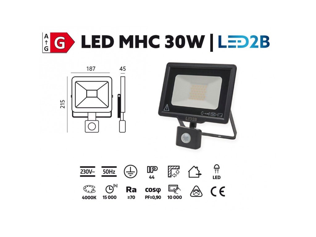 LED reflektor 30W s detektorom pohybu 4000K čiernyZdroj svetla: LED