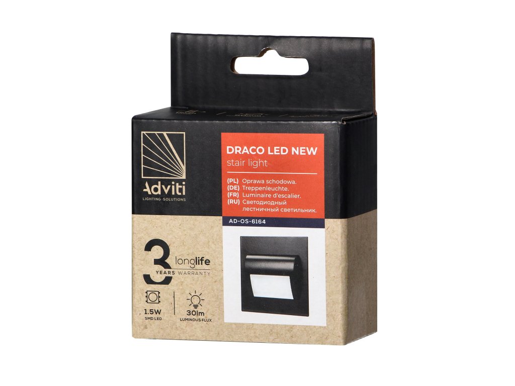 LED svetilka za stopnice 1,5W 4000K črna je sodobna in elegantna rešitev za osvetlitev stopnic v vašem domu, ki združuje eleganten dizajn z varčno LED tehnologijo. Idealna rešitev, ki vašemu interierju dodaja sodoben pridih, hkrati pa zagotavlja varnost pri gibanju po stopnicah tudi v najbolj temnih kotičkih.