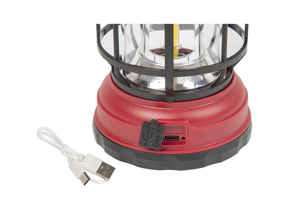 - Diodi so enakomerno razporejeni okoli, osvetljujejo prostor v polmeru 360°. Svetilka se sproži z vodoodpornim gumbom. Ima stabilno podstavek in kavelj za obešanje ali prenašanje. Je energetsko varčna, napaja se z dvema baterijama 18650 in možnostjo polnjenja preko novega tipa C.
