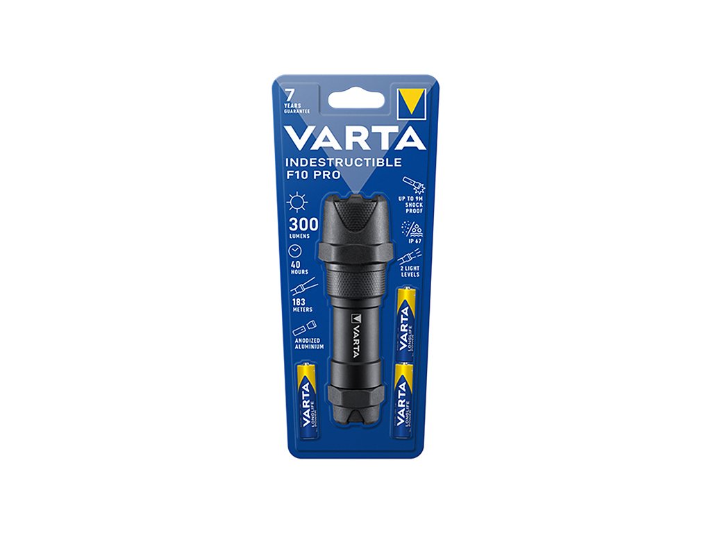 SpecifikacijeTip svetilke: LEDSerija: INDESTRUCTIBLEOznaka: F10 PRO 18710Razred odpornosti: IK08 (IEC 62262)Razred zaščite: IP67Nivoji svetlobe: 2 (visok in nizek)Vir svetlobe: 6W LEDDomet svetlobe: do 183 metrovČas delovanja: do 40 urSkupna svetlobna moč: do 300 lumnovDolžina: 138 mmPremer glave: 43,50 mmTeža z baterijami: 165 gNapajanje: 3x AAA baterije (vključeno) Izjemna odpornostSerija svetilk INDESTRUCTIBLE se ponaša z izjemnimi lastnostmi, ki zagotavljajo odlično odpornost na vse vrste padcev, udarcev ali vremenskih razmer. Predstavljeni model F10 je opravil test padca z višine kar 9 metrov.Skrivnost vzdržljivostiOhišje svetilke je izdelano iz eloksiranega aluminija tipa II, poleg tega pa sta glava in konica opremljeni z gumiranim materialom, ki ublaži udarce. Prav tako sta leča in reflektor izdelana iz netlomljivih materialov. Dodatno je tesnost svetilke omogočala ohranjanje odpornosti IP67, kar pomeni vodoodpornost in odpornost na prah.