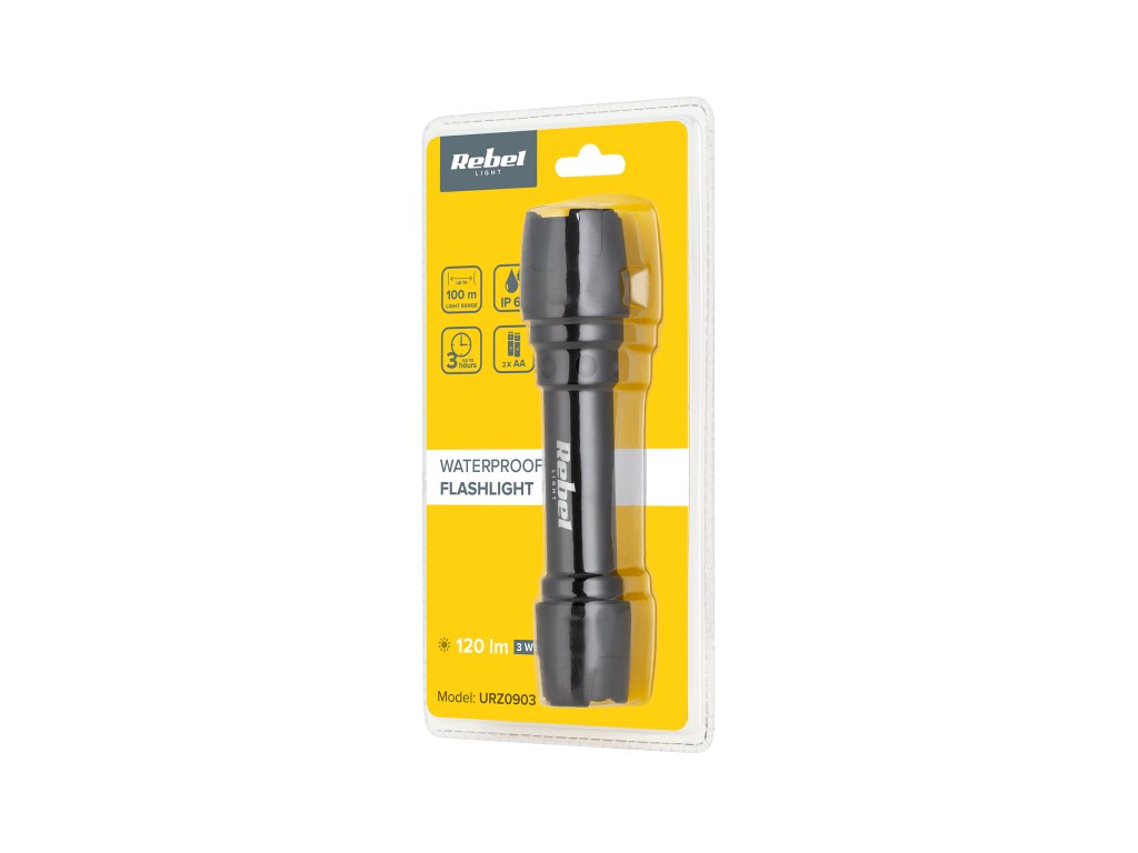 Opremljena z LED diodo z močjo 3 W, svetilka generira svetlobni tok z močjo 120 lumnov, kar zagotavlja svetlo in jasno osvetlitev na razdalji do 100 metrov. Čas delovanja do 3 ure z dvema AA baterijama (nista priloženi v kompletu) omogoča dolgo uporabo brez potrebe po pogostem polnjenju.