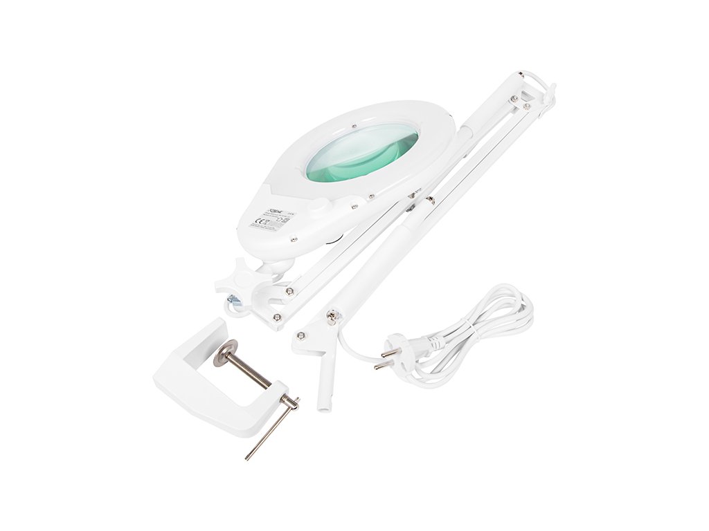 Velika leča, ki omogoča povečavo za 5 dioptrij - x2,25, in LED diode, ki osvetljujejo delovno površino, ustvarjajo idealno orodje za vse kozmetične, medicinske, draguljarske in elektronske storitve. Poleg tega je lahko odlična za osebe s slabšim vidom med branjem.