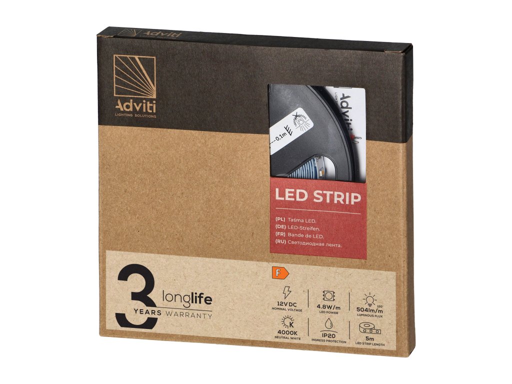 Odkrijte neskončne možnosti osvetlitve z LED trakom 12V, 5m, 4000K, IP20, 500lm/m, ki je idealna izbira za vse, ki iščejo kakovostno in vsestransko svetlobno rešitev. Ta LED trak ponuja nežno, prijetno belo svetlobo s temperaturo barve 4000K, kar ga naredi popolnega za sodobne interierje in vsakodnevno uporabo. Zmogljivost 500lm/m zagotavlja zadostno svetilnost za kakršnokoli osvetlitev.