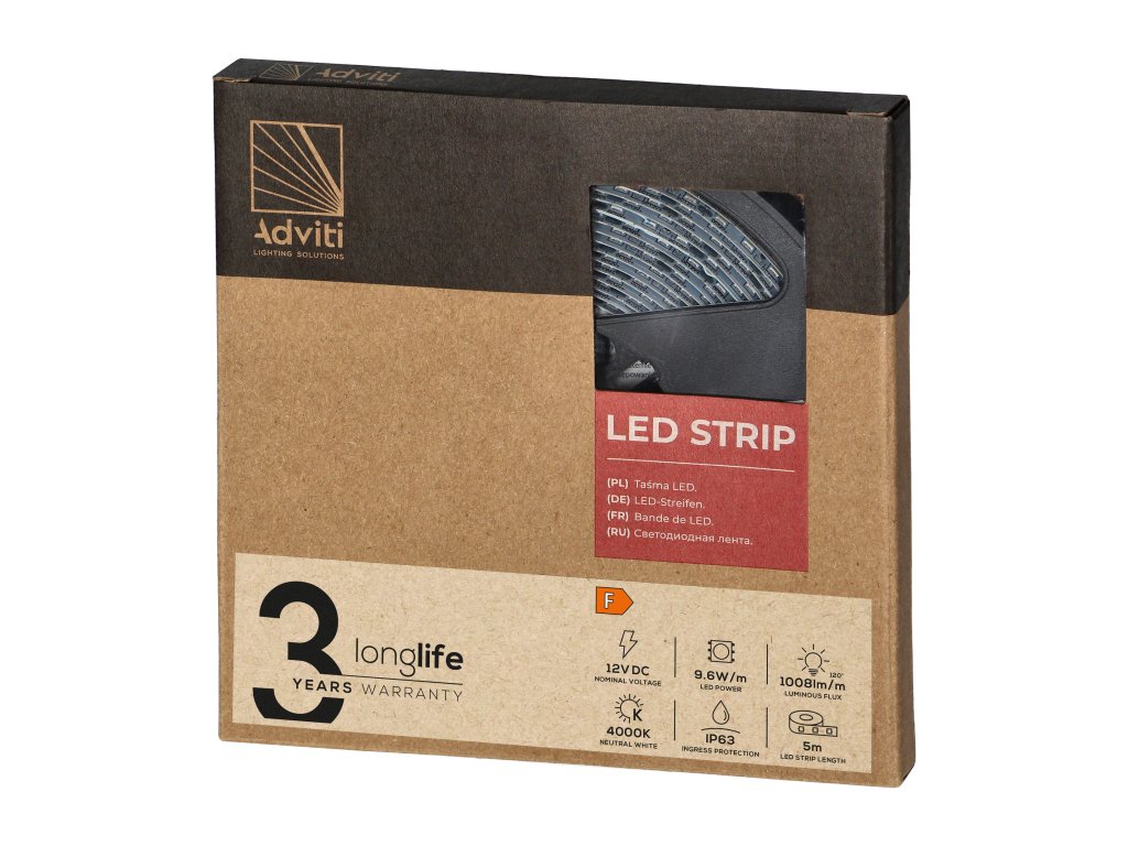 - LED trak 5m 12V IP63 4000K 120LED/m 1000lm je mogoče kreativno uporabiti za osvetlitev kuhinjskih pultov, kopalnic, stopnic, pisarn ali bivalnih prostorov. Je enostaven za namestitev zaradi prilagodljivega dizajna in samolepilne površine. Preprosto odstranite zadnjo folijo in aplikujte LED trak na želeno površino.