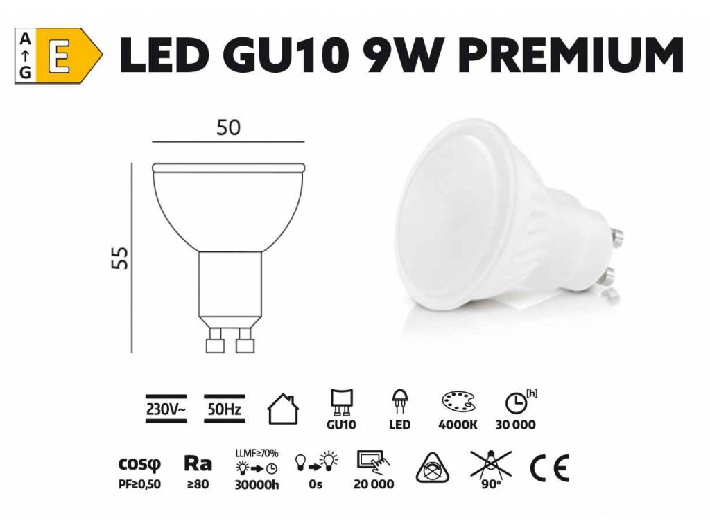 LED žarnica 9W GU10 4000K 230V PREMIUM