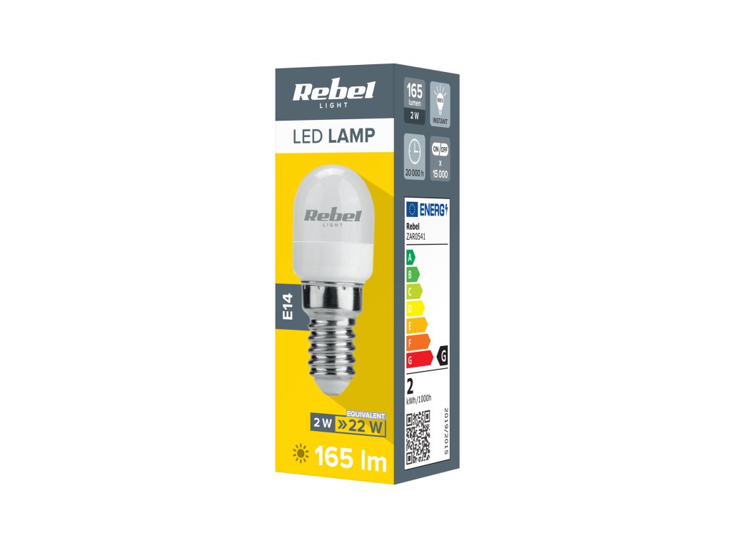 LED žarnica Rebel z močjo 2W z nastavkom E14 je specializiran vir svetlobe, idealen za uporabo v hladilnikih in napah. Zaradi hladne bele svetlobe z barvno temperaturo 6500K ta žarnica zagotavlja jasno in izrazito osvetlitev, ki se odlično obnese v hladnem okolju.