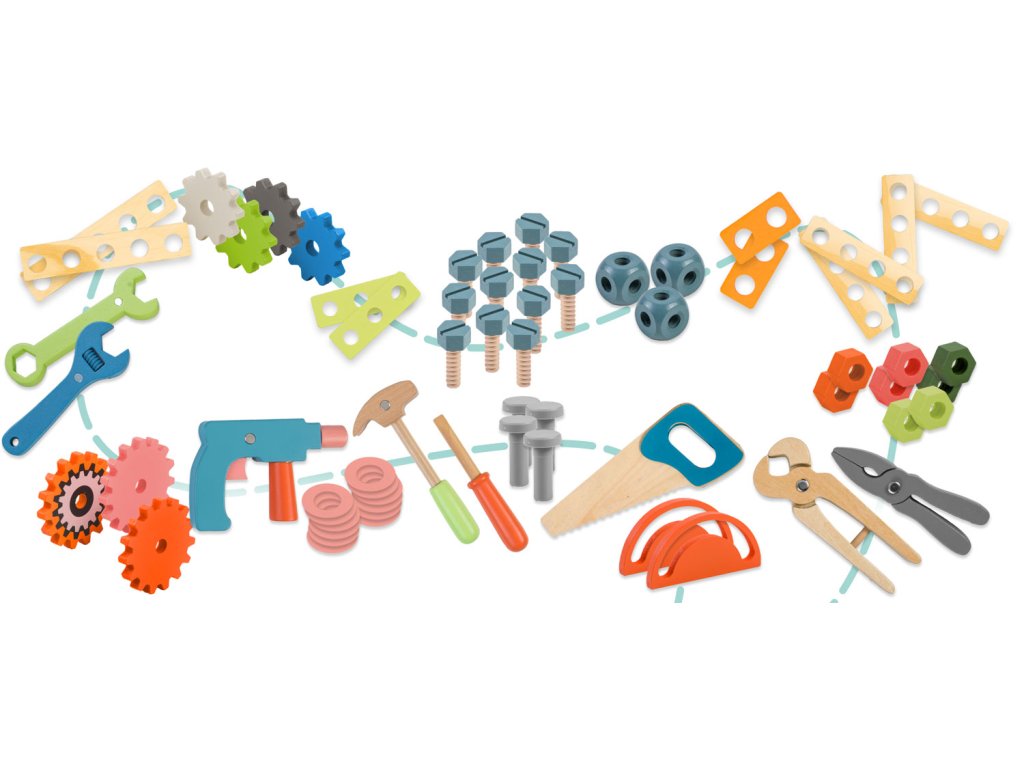 Temu dodajte nekaj premičnih elementov, primež za zabavno igro, ki posnema »odrasla« tehnična opravila ali ustvarjanje lastnih konstrukcij.
