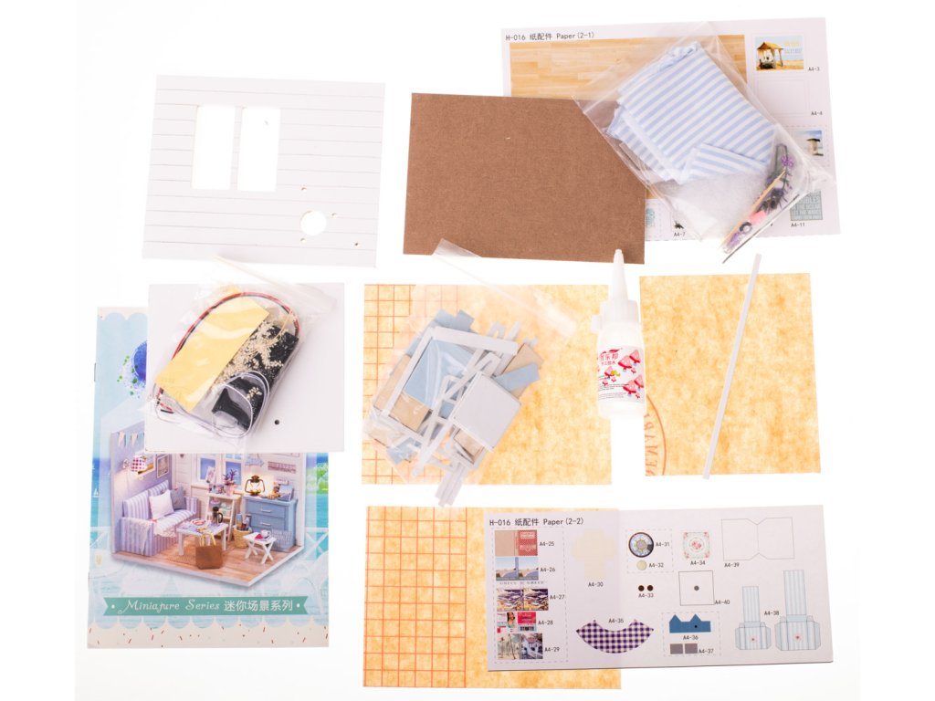 Lesena hišica za punčke dnevna soba LED DIY model 3016
