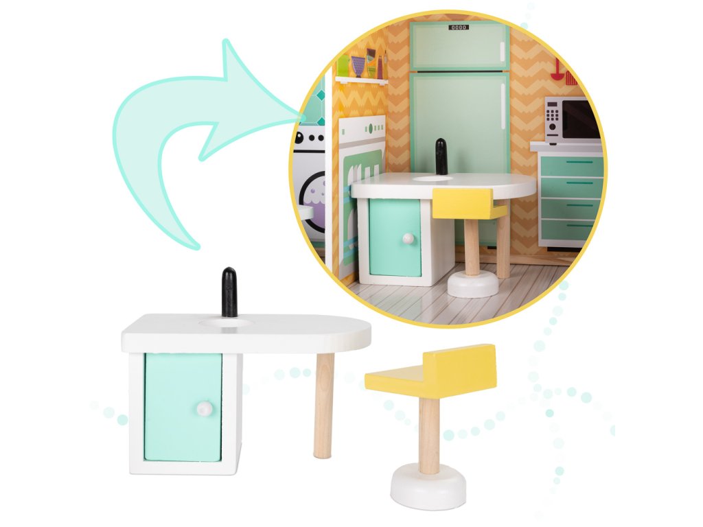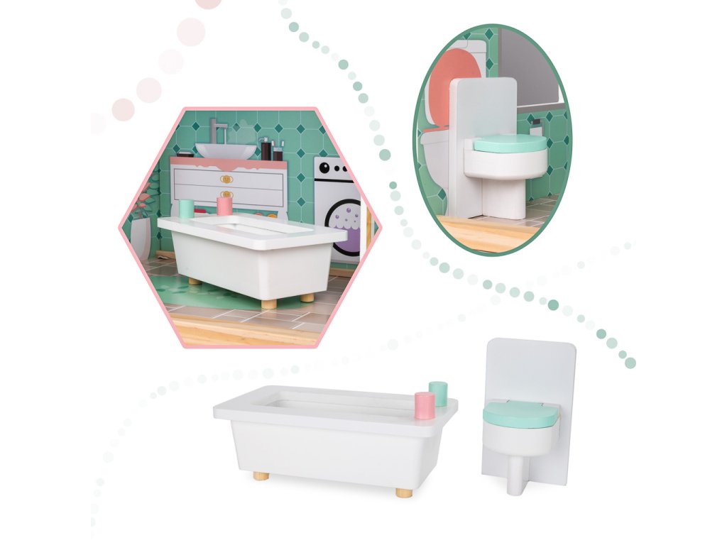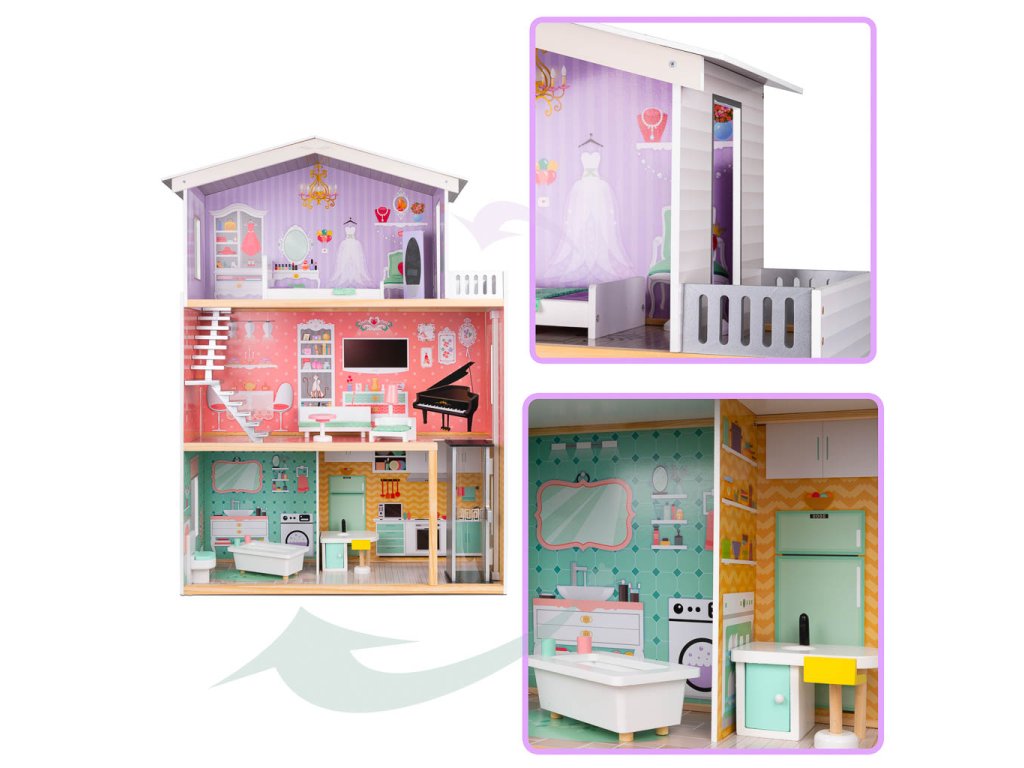 Lesena hišica za punčke + pohištvo pastel 117 cm