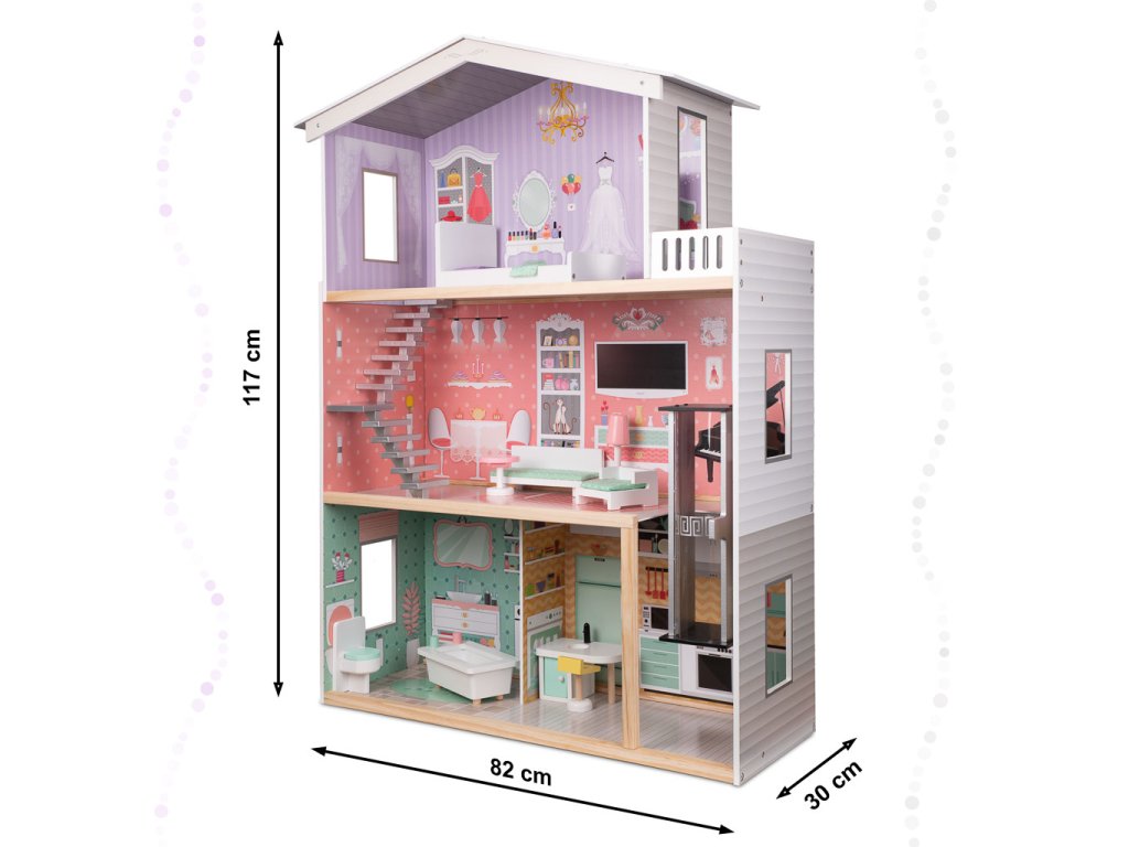 - Hiška: 82 cm x 30 cm x 117 cm