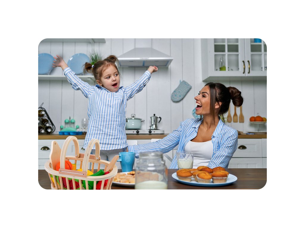 - Spodbujanje k ustvarjalni igri – otroci se lahko igrajo uprizarjanje prizorov, npr. v trgovini ali med kuhanjem.